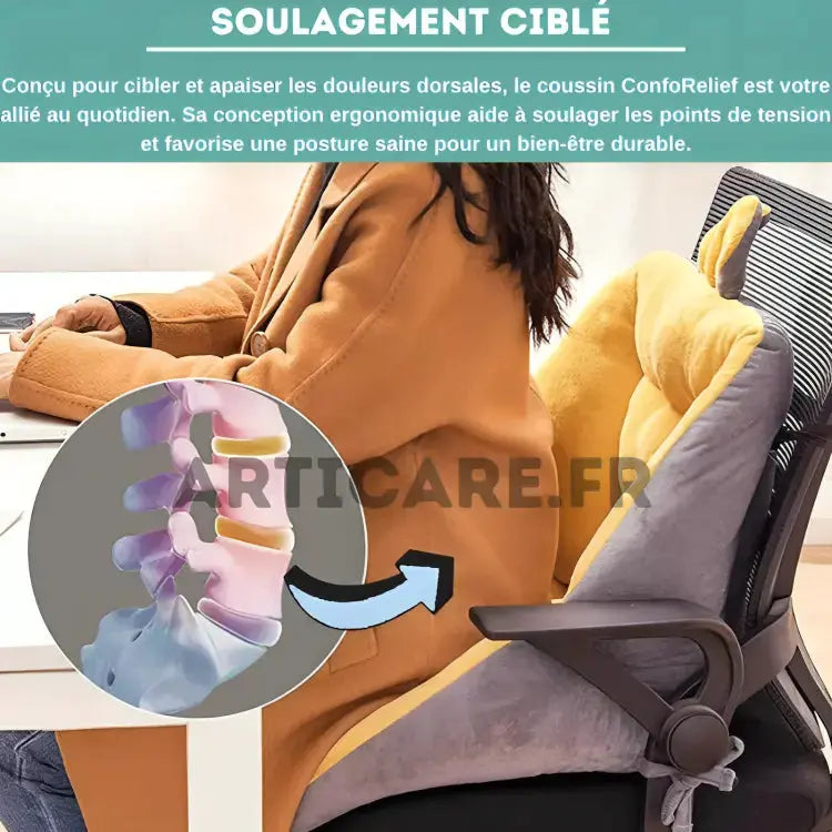 ConfoRelief : Coussin Révolutionnaire qui Apaise le Dos et Enveloppe de Douceur | ArtiCare™