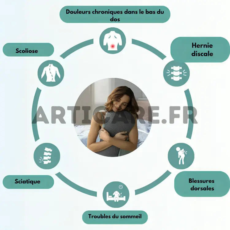 "Le coussin DorsaComfort a transformé mes nuits ! Adieu les douleurs lombaires au réveil. Je me sens reposée et prête à attaquer la journée. Un changement radical, merci Articare ! " - Sonia D. - Cliente ArtiCare™